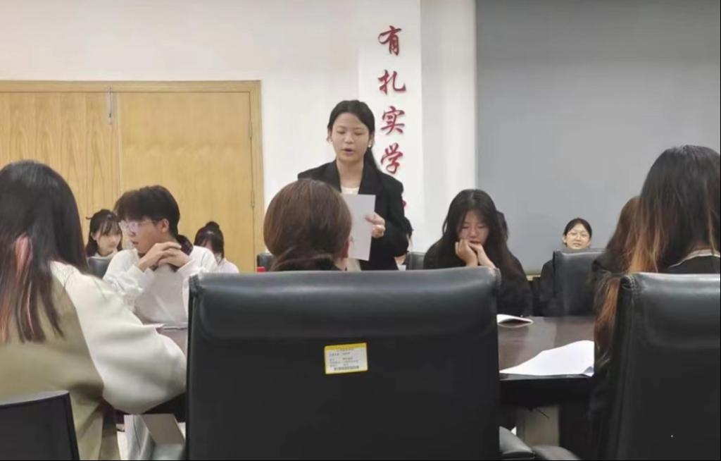 会议第四项,由学院分团委书记洪婷作总结。洪婷强调,希望大家继续保持工作热情,积极配合老师,认真踏实完成每一项工作。各部门之间需保持紧密联系,加强对内交流与对外发展,增强团队荣誉感,共同进步。