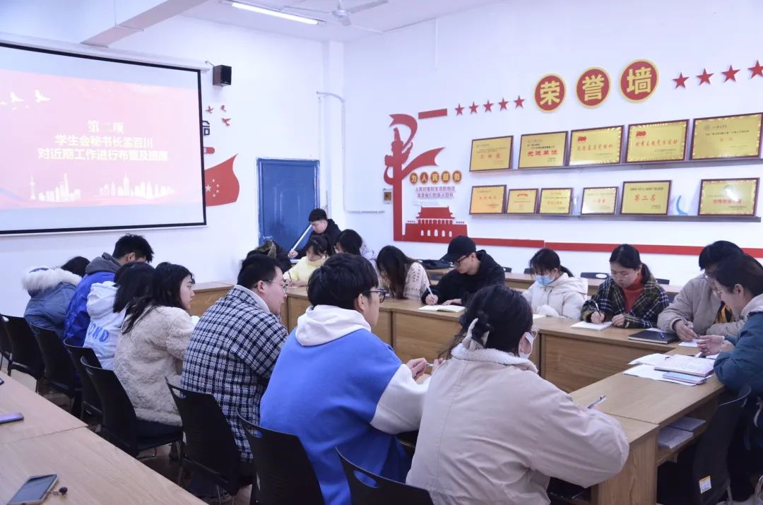 为了团结引领广大团员青年永远跟党走、奋进新征程,进一步加强成员之间的沟通交流,布置新学期的团学工作,以实际行动迎接党的二十大胜利召开,2月25日中午12:40时,我院在清河11栋104党建活动室召开了永利yl23411集团分团委、学生会新学期团学工作布置会,学生会各部负责人参加了会议,会议由分团委书记、学工办主任洪婷主持。