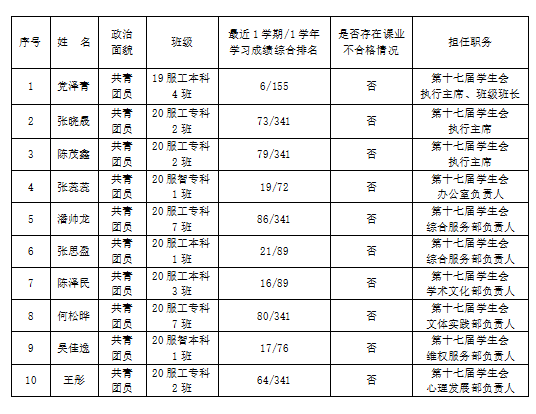 学院学生会负责人必须具备以下条件: