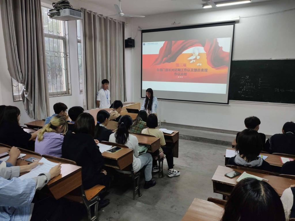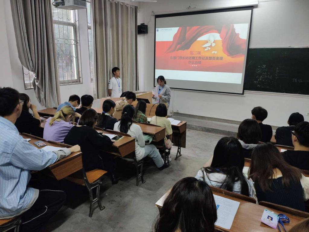 各部门部长汇报了近期工作的开展情况,并对部门每一位成员自本学期以来的工作状况进行点评。他们对部员的工作表现、工作态度以及工作完成情况表示肯定,对于不足之处提出相应的意见和建议,并希望各位可以继续保持良好的精神风貌,弥补缺陷不足,加强交流学习,积极参与学院开展的各项工作,起到良好的带头作用。