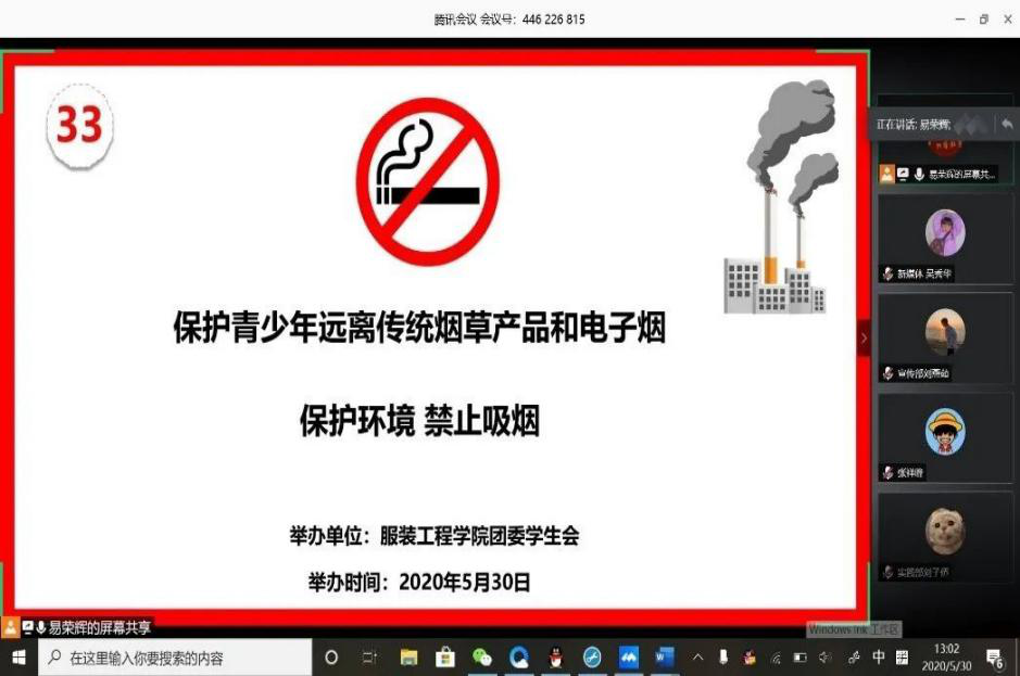 为增强大家珍爱生命意识,树立和展现我院学子良好的精神风貌,养成良好的文明生活习惯,创造文明、洁净、优美的社会环境。对此,永利yl23411集团团委学生会于5月30日下午13时开展“保护青少年远离传统烟草产品和电子烟”为主题的线上团日活动。参会人员有永利yl23411集团团委书记刘丹丹,团委副书记方泽、团委学生副书记谢贤帮、学生会主席团成员及全体学生会成员。会议由易荣辉主持。