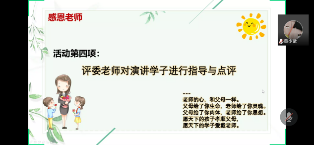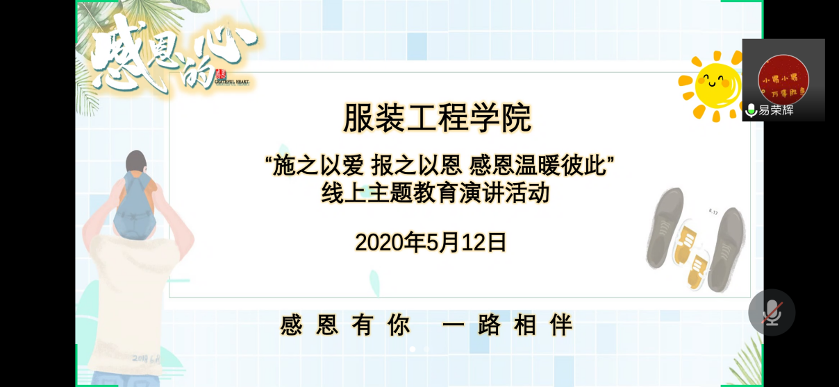 “受人之恩,当涌泉相报。”感恩自古以来是中华民族的传统美德,华夏儿女怀揣着一颗感恩之心,关照彼此,相互支持。对于此次新冠肺炎疫情,全国上下齐心协力,医护工作者奋力拼搏,他们的事迹令人敬服,值得每一个人感恩。为此,永利yl23411集团团委学生会于5月12日下午15时开展以“施之以爱,报之以恩,感恩温暖彼此”为主题的线上演讲活动,借此积极弘扬感恩的美好内涵与品质,增强学生感恩意识,提高学生综合素质。出席本次活动并担任评委的嘉宾有团委副书记方泽老师,辅导员董少武、冯秀秀、范斌老师以及团委学生副书记谢贤帮。会议由副主席易荣辉主持。