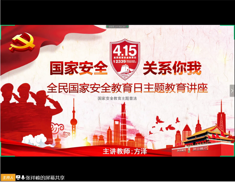2020年新型冠状疫情的爆发,牵动着无数国人的心,正值第五个全民国家安全教育日,为深入学习贯彻习近平新时代中国特色社会主义思想,坚持总体国家安全观,着力防范化解重大风险,营造维护国家安全的浓厚法治氛围,提高国家安全法治宣传的影响力和传播力,永利yl23411集团团委于2020年4月14日17时30分在腾讯会议开展以“‘4.15’第五个全民国家安全教育日”为主题的线上团日活动。团委副书记方泽、团委学生副书记谢贤帮、学生会全体成员共同参与此次活动,活动由学生会副主席张祥峰主持。
