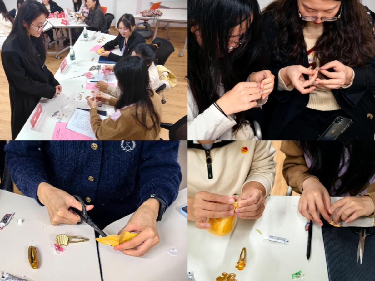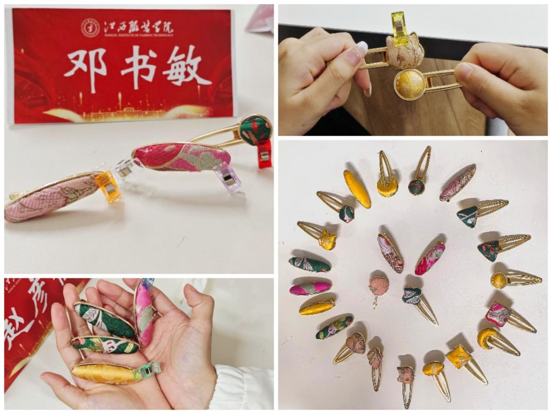 实践结束后,大家分享了自己的感悟。李优谈到:“从裁剪锦缎到粘贴模具,每一步都藏着讲究。看着宋锦变成日常发卡,突然明白非遗从不是遥不可及的符号,而是能随发丝晃动的温柔风景。”邓书敏则表示:“作为服装设计与工程专业学生,这次活动让我懂得了文化自信不是空洞的口号——用专业视角为千年技艺注入新活力,让非遗点亮生活,就是我们传承文化的最好方式。”