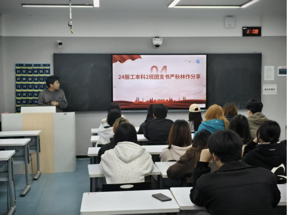 24服工2班严秋林同学为大家带来了社会实践分享。严秋林同学结合自身参与社区服务的经历,生动讲述了他助力社区反诈宣传、参与大街清扫公益行动,以及发挥服装工程专业优势为社区老人免费缝补旧衣的暖心故事。一件件缝补整齐的衣物、一场场细致入微的防诈宣讲、一次次躬身力行的清扫行动,展现了青年学生将专业技能转化为服务社会的实际能力,也诠释了雷锋精神在新时代的生动实践,让在场同学深受触动与鼓舞。