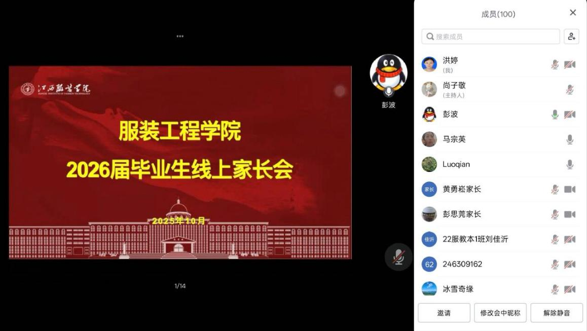 永利yl23411集团讯(撰稿人:王舒)为深入贯彻“家校共育”的教育理念,进一步推动家校共育工作走深走实,10月28日晚8:00时,永利yl23411集团举办了2026届毕业生线上家长会,聚焦学业帮扶、就业指导等话题,通过云端搭建起家校沟通的平台,共同探讨学院毕业生的学业发展与职业规划。学院党委书记彭波、学工办副主任洪婷及全体毕业班班主任参加了会议,会议由毕业班辅导员尚子敬主持。