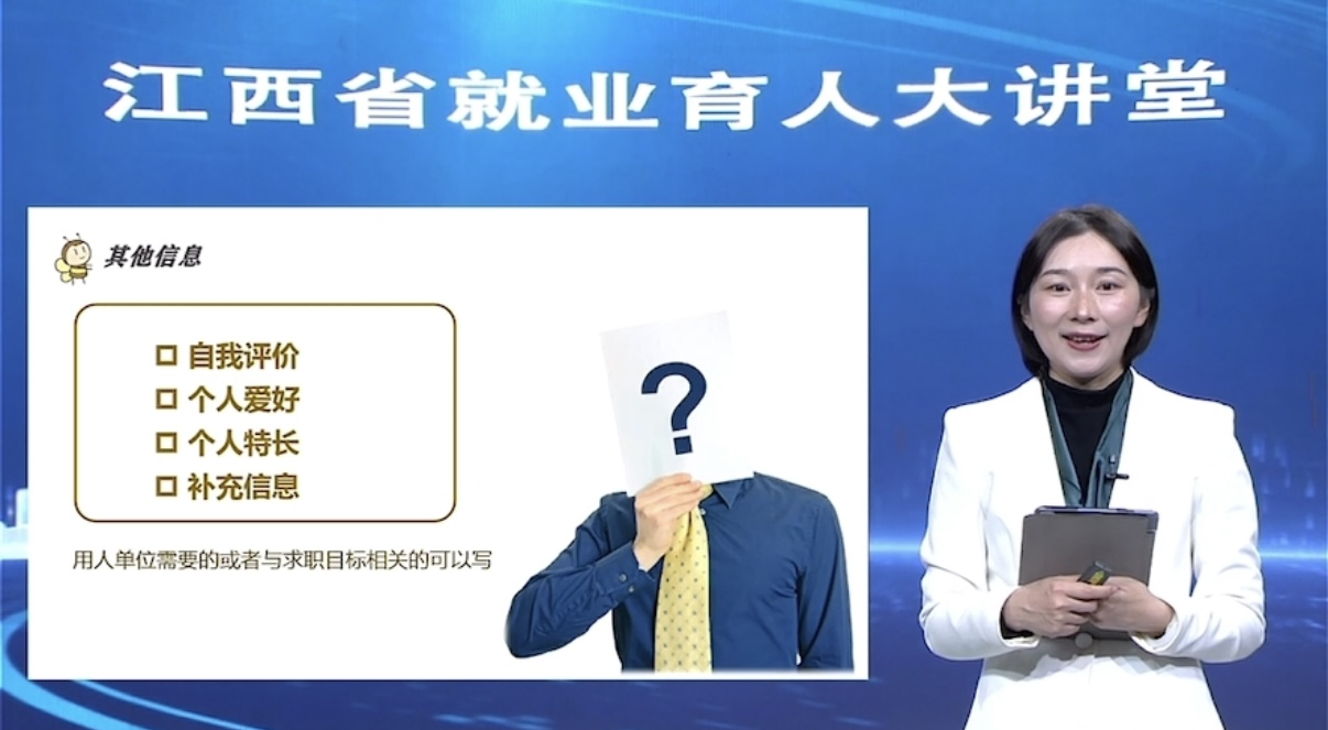 永利yl23411集团讯(撰稿:闫子怡)为切实提升学生撰写简历能力,打造兼具专业性与竞争力的个人简历,提升就业质量,12月4日晚7:00,永利yl23411集团组织师生收看了由江西省教育厅和江西省教育评估检测研究院共同承办的第五期江西省就业育人大讲堂直播课。