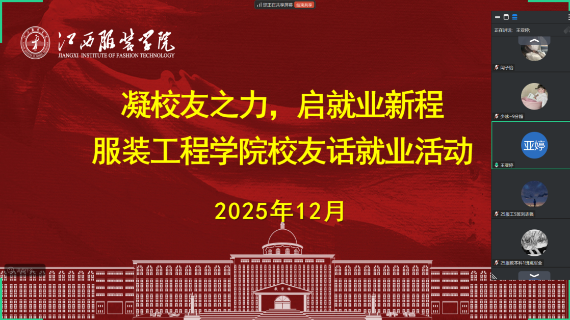 随后,22届毕业生王亚婷校友带来了涵盖求职技巧、行业选择、职场心态调整等多方面的全面分享。她始终铭记母校的培育之恩,此次特意为学弟学妹们答疑解惑,传递宝贵经验。王亚婷结合自身工作经历,强调在工作中要具备扎实的组织协调、沟通表达和抗压能力,才能从容应对各类挑战。针对当下热门的跨界就业趋势,她分析道,如今就业环境变化迅速,多元化背景成为职场竞争力的重要组成部分,切勿用传统思维局限职业选择。在互动交流环节,面对同学提出的创业相关疑问,她结合专业知识给出建议,鼓励大家先扎实学好服装设计、面料等核心课程,筑牢专业根基。王亚婷的分享既有宏观的行业洞察,又有具体的实操指导,字里行间满是对学弟学妹的真诚关怀,更藏着对母校培育的感恩回馈。