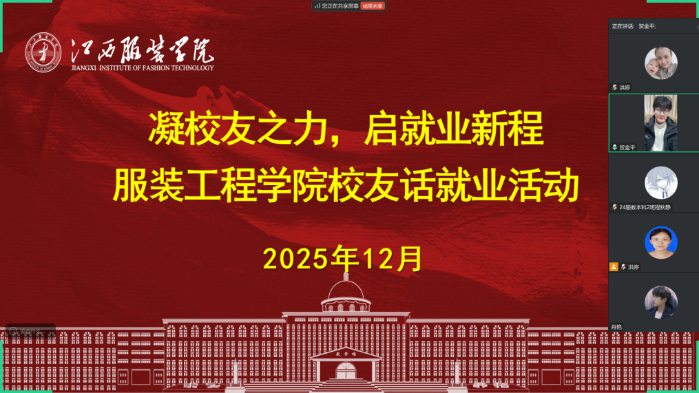 第二位分享的校友是25届毕业生贺金平,目前就职于波司登服饰有限公司,担任品质跟单员一职。谈及母校,他满是感激:是母校的专业教育和悉心栽培,让他拥有了立足职场的底气。贺金平特别强调,扎实的专业基础是叩响职场大门的关键,学弟学妹们要珍惜在校时光,深耕专业知识,求职时要找准契合自身兴趣与发展的岗位,入职后更要保持终身学习的态度,不断汲取新知识、锤炼新技能,以适应行业的快速变化,在职业道路上持续进阶。这份源于实战的分享,既饱含对学弟学妹的期许,更彰显了对母校育人理念的传承。