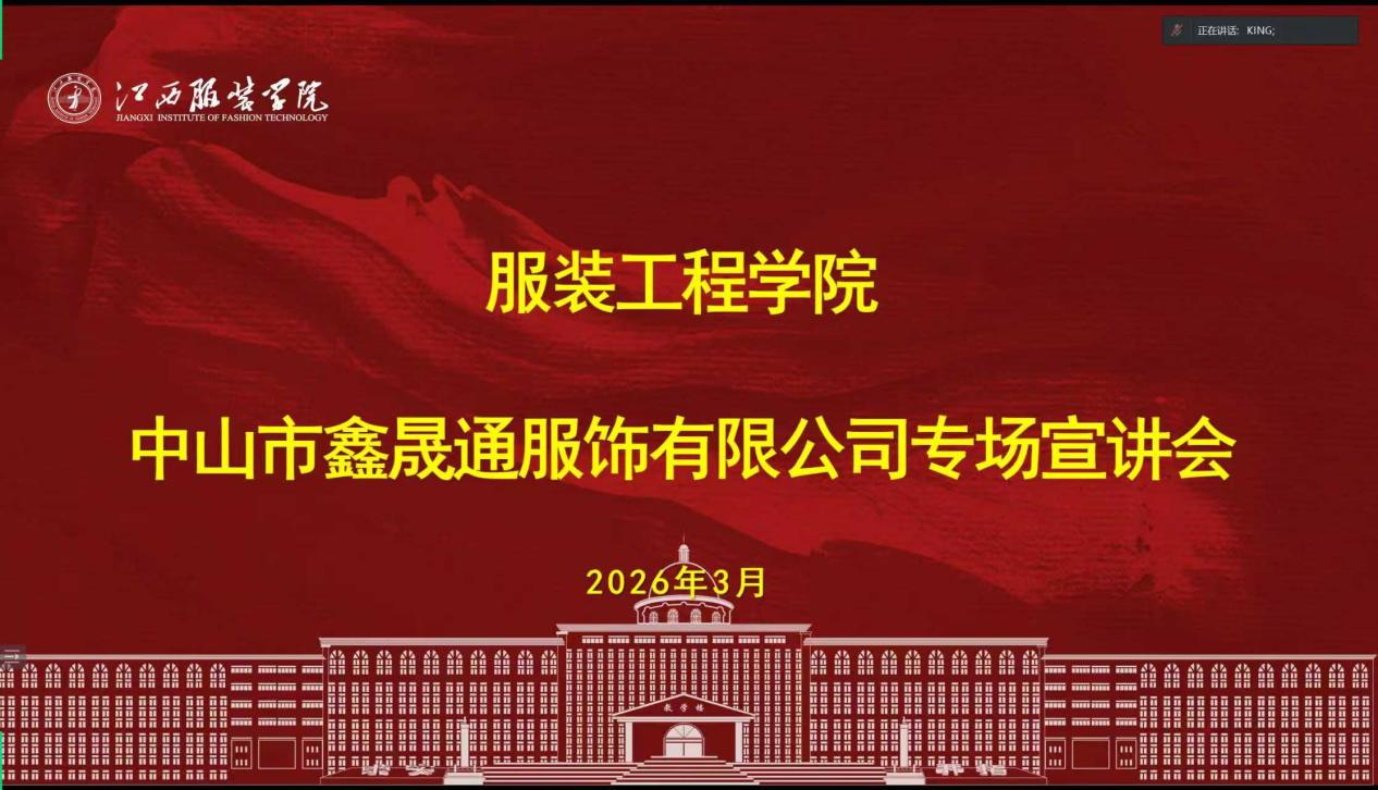 为精准对接企业人才需求,助力我院学子拓宽就业渠道、提升就业竞争力,3月9日晚7:00,永利yl23411集团特邀中山市鑫晟通服饰有限公司走进云端,为同学们带来优质岗位与就业机会。