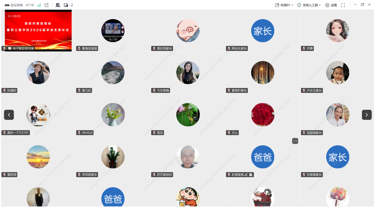 会上,各毕业班班主任依次通报了所带班级的毕业审核、学分修读、毕业设计进展及就业落实情况,详细介绍了班级中未通过毕业审核学生的情况、已落实就业去向人数及未就业学生的求职状态,针对学分不足、第二课堂学分未修满等问题,明确了完成的时间节点,使家长全面掌握学生的学业与求职近况。