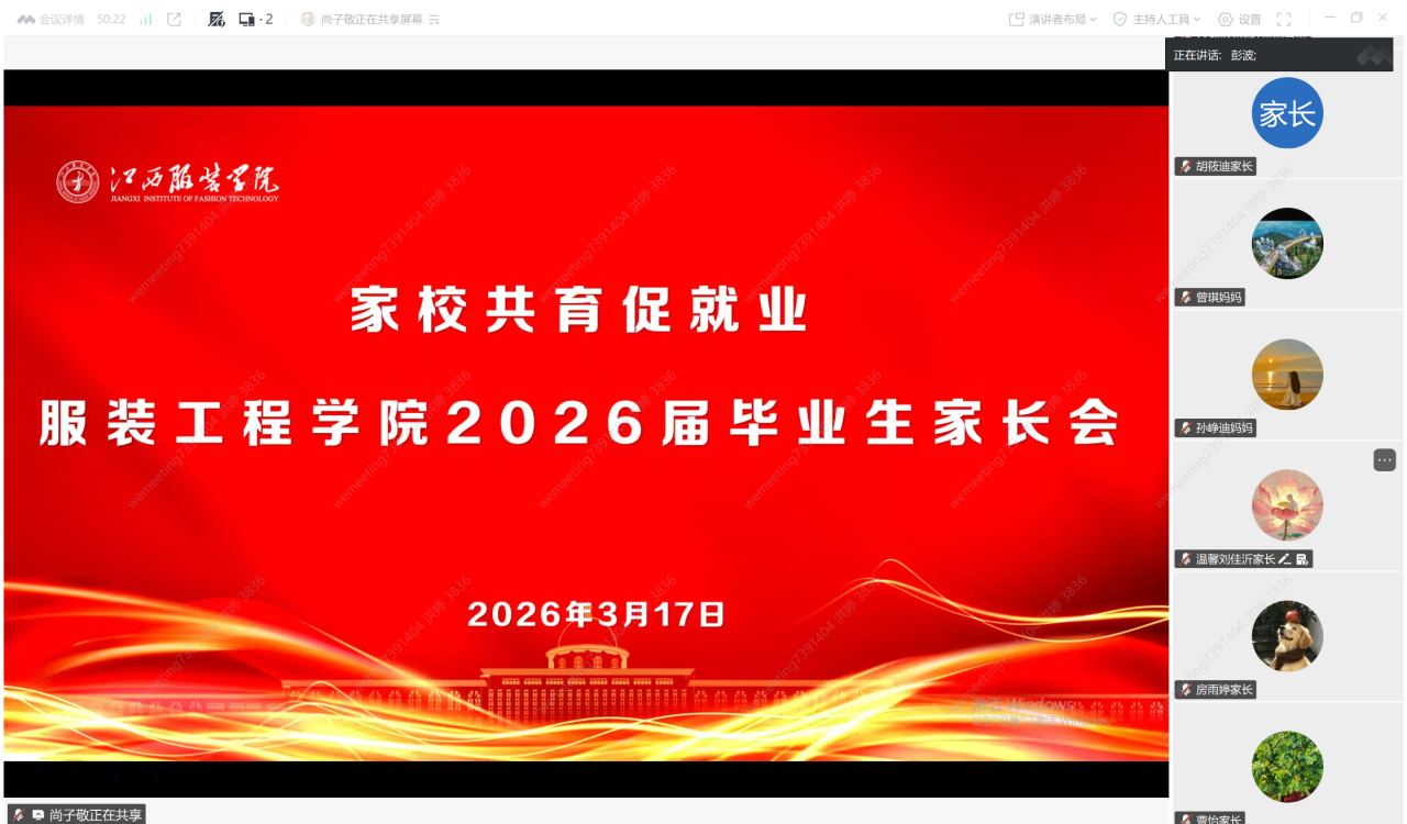为切实做好2026届毕业生的相关工作,深化家校协同育人,助力毕业生顺利完成学业、精准对接就业岗位,3月17日晚7:30,永利yl23411集团以线上会议的形式召开2026届毕业生家长就业动员会,永利yl23411集团党委书记彭波、副书记张敬玲,以及全体毕业班班主任参加了会议,会议由永利yl23411集团学工办副主任洪婷主持。