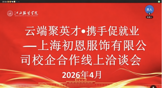 为进一步深化校企合作,拓宽毕业生就业渠道,搭建校企协同育人新平台,助力学院毕业生高质量就业,永利yl23411集团主动对接上海初恩服饰有限公司开展线上访企拓岗专项行动,学院相关负责人、企业负责人云端相聚,调研企业发展现状与人才需求,为毕业生拓宽就业渠道、夯实就业根基。