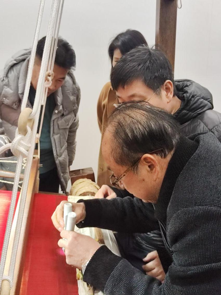 随后,专家们参观了研究院的各个工作区域,详细了解了丝绸织绣技艺的制作过程和独特魅力。贾玺增教授和张成义教授对研究院在丝绸织绣技艺方面所取得的成果给予了高度评价,并表示愿意与研究院进一步加强学术交流与合作,共同推动传统工艺的传承与发展。