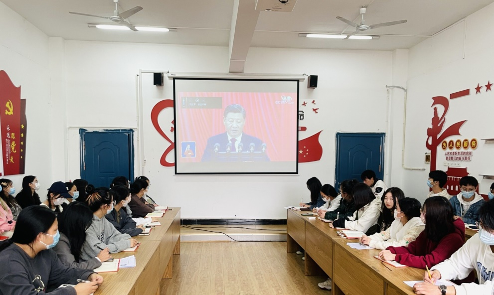 活动第二项,全体人员共同观看《习近平在中国共产党第二十次全国代表大会上的报告》视频,习近平总书记强调,“新征程上,我们要始终坚持一切为了人民、一切依靠人民。广大青年要坚定不移听党话、跟党走,怀抱梦想又脚踏实地,敢想敢为又善作善成,立志做有理想、敢担当、能吃苦、肯奋斗的新时代好青年,让青春在全面建设社会主义现代化国家的火热实践中绽放绚丽之花。”