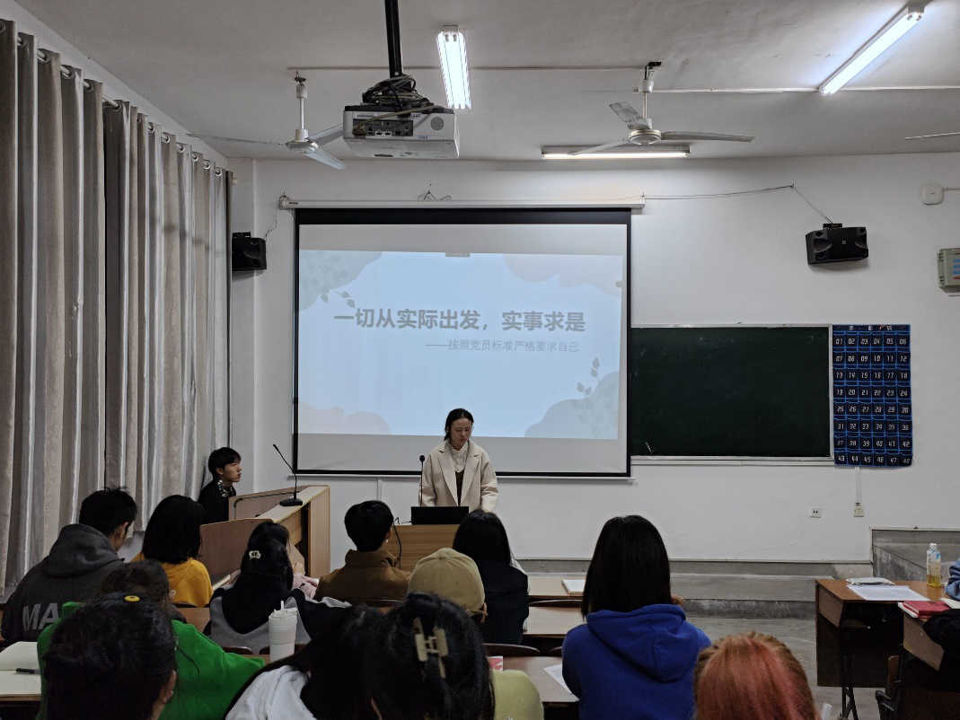 接着,由培训班的学员分享自己的学习体会。南迎雪分享了她在江服做核酸的时候,志愿者热心帮助她的经历,她表示作为一名积极向党组织靠拢的青年,要脚踏实地奋斗前行。
