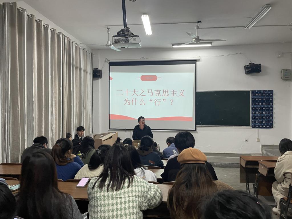 为深入学习宣传贯彻党的二十大精神, 11月18日晚17:30,服装工程学院于主教楼126多媒体教育室开展了“永远跟党走,奋进新征程——学习宣传贯彻党的二十大精神”党史知识竞赛,学院学生党支部书记洪婷,辅导员石福俊、冯秀秀以及全体党建成员参加了此次活动,活动由孙浩钧主持。