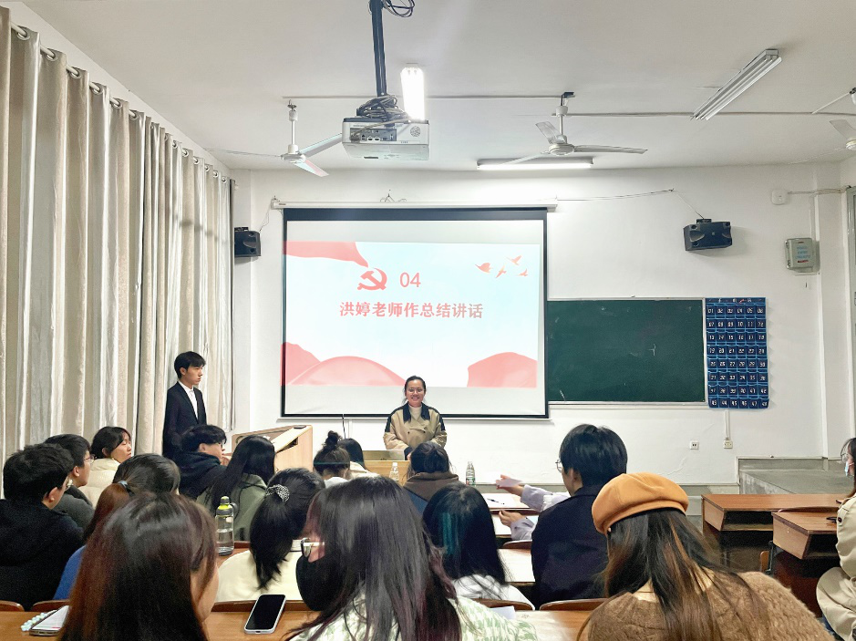 活动最后,洪婷作总结讲话。她对积极参与比赛的选手提出表扬,同时希望同学们通过本次党史竞赛活动,能加深对党的二十大精神的学习和感悟,并在学习和工作中予以贯彻,争做有理想、敢担当、能吃苦、肯奋斗的新时代好青年,让青春在全面建设社会主义现代化国家的火热实践中绽放绚丽之花。