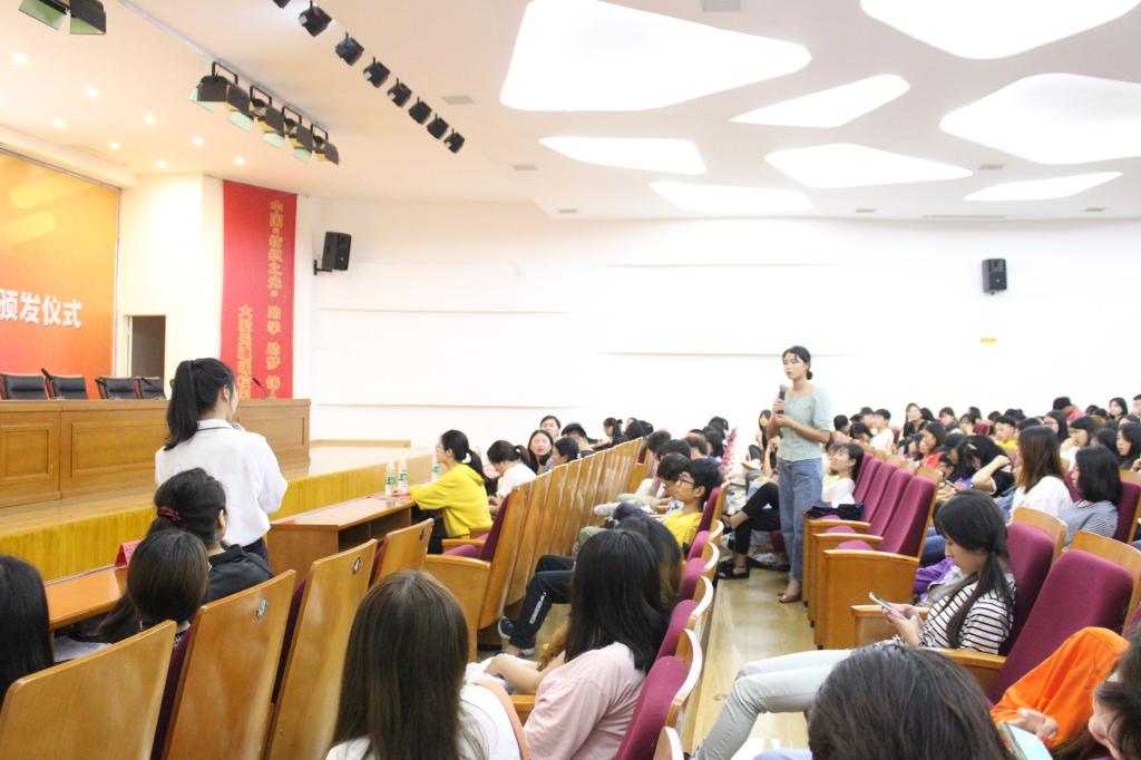 分享结束后,为了更好的感受身边榜样的力量,促进学院学子间的交流,大会还设置了互动提问环节。同学们关于专业的困惑、自身的迷茫、坚持的意义等,在这里得到了答案。