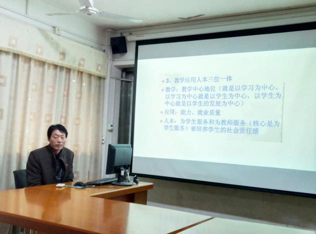 合格评估过程中的四个促进、三个基本、二个突出、一个引导。四个促进为促进经费投入增加、促办学条件改善、促教学管理规范、促教学管理提高。三个基本为办学条件基本达标、教学管理基本规范、教学质量基本保证。二个突出为突出服务地方行业指向、突出应用型人才培养指向。一个引导为引导建立校内质量保障体系。王鸿霖副院长结合工程学院与其他院校的具体情况进行分析,找差距、落实效、抓重点、抠细节,强调规范和特色建设同步进行。