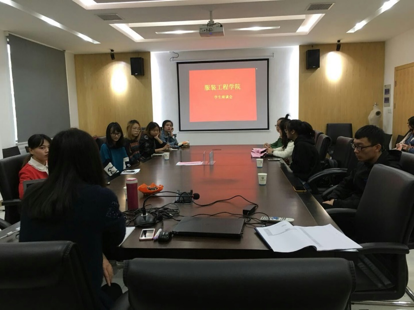 此次座谈会的主题是学院领导与学生进行学风教风的深入交流, 主要内容是14本科毕业年级同学代表对教师课堂教学过程中的反馈,对毕业设计、毕业实习、创新创业置换学分等问题,以及毕业班的同学们如何才能认真听课,以及同学们在校的生活、学习不便之处希望得到改善的方面。会上,学生代表踊跃发言,在总体肯定目前学校教学工作基础上,对相关课程开设的疑问、对毕业问题的想法、对专业课老师的选择比如说打版老师,能不能一直从大一到大四统一一个,还有实验班设置的意义等,并对教学方面,结合自身的上课体会纷纷献言献策,有针对性地提出许多中肯的意见和建议。