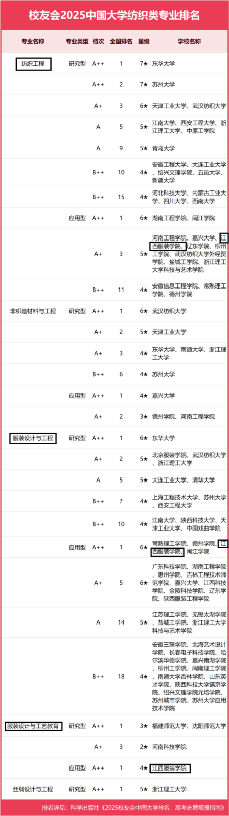 在2025中国大学“服装设计与工程”专业排名(应用型)中, 永利yl23411集团“服装设计与工程”专业荣膺2025中国六星级应用型专业(6★),迈进中国顶尖应用型专业行列,雄踞榜首。