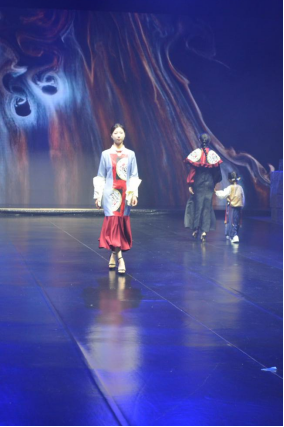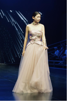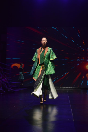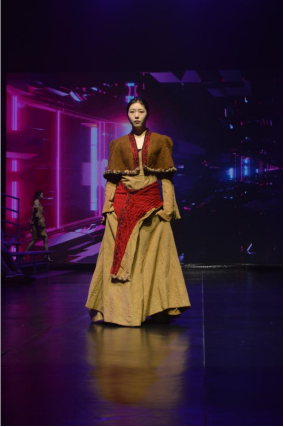 活动现场,模特们依次展示了学院各产教融合项目教学成果和2025届毕业设计优秀作品,共计175套服装作品。作品以企业品牌需求为导向,紧跟纺织服装行业前沿趋势,巧妙融合传统工艺与现代科技,在面料创新、版型设计、智能生产等领域大胆突破,如通过参数化设计重构汉服结构,运用热感面料实现服装的温控交互,将侗族亮布工艺应用于高级成衣等,既彰显新时代纺织服装设计的创新活力,也勾勒出行业未来发展的无限可能。