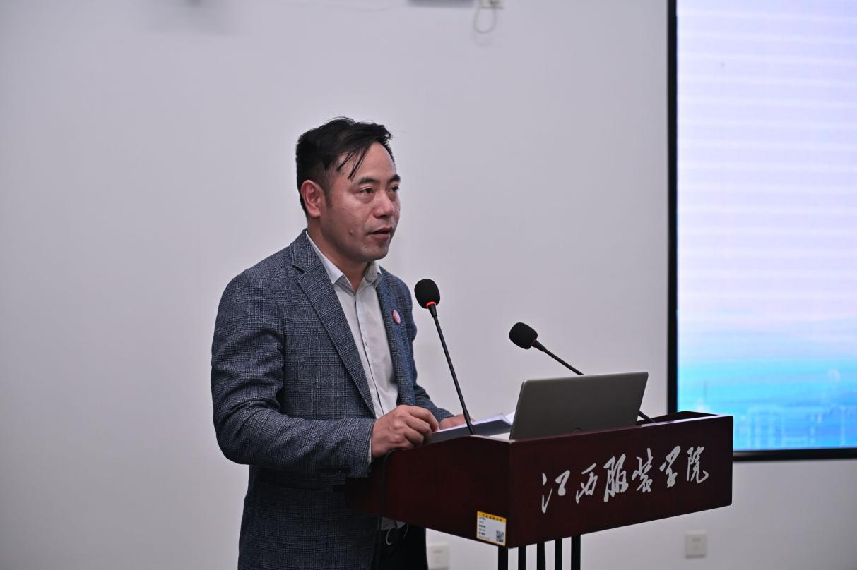 图4 梁鑫花博士以“蛋壳膜生物基压电纤维成型机理及性能研究”为题作学术报告